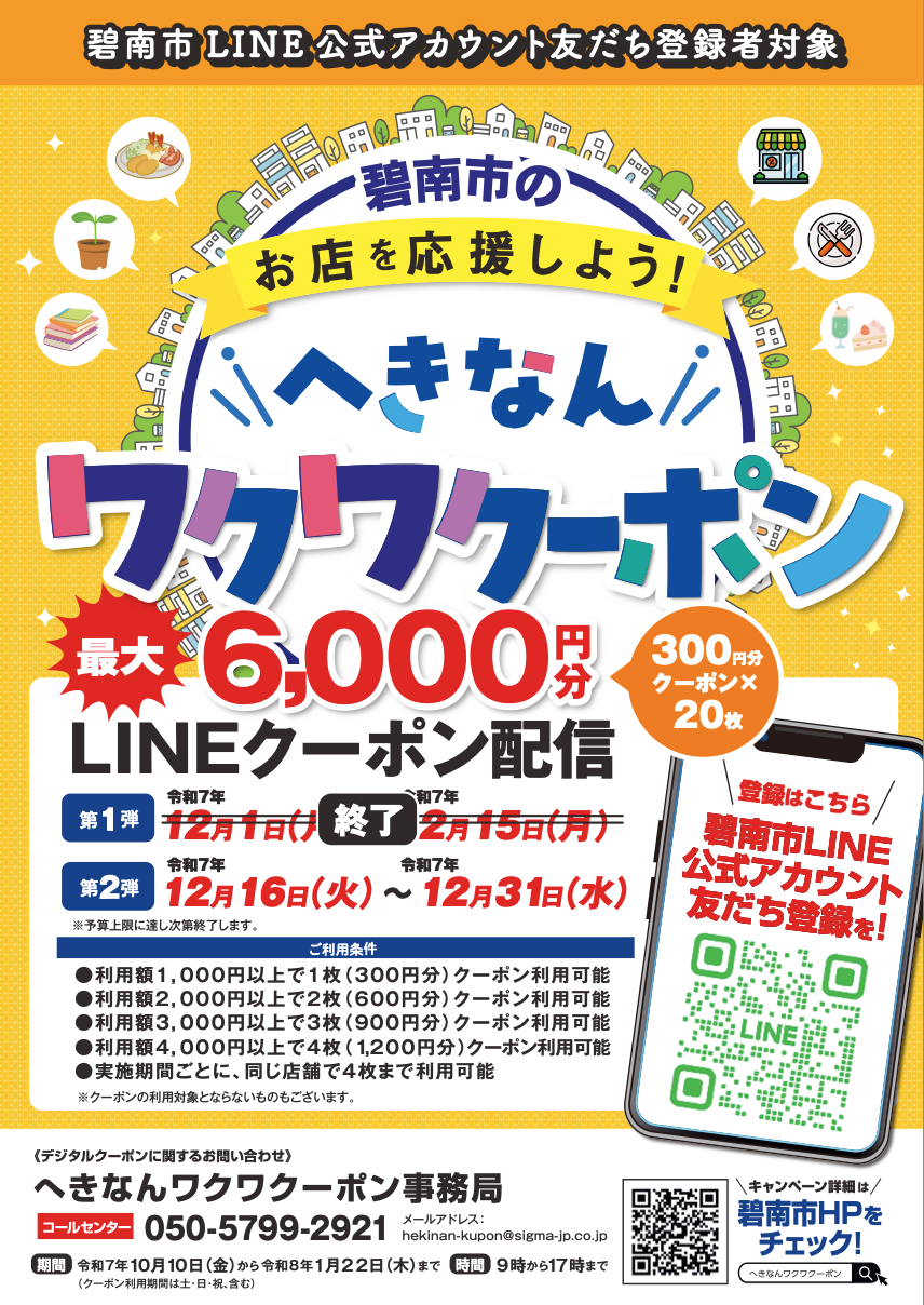 12月16日(火)から始まる『へきなんワクワクーポン第2弾』は、第1弾よりもお得になります🙌